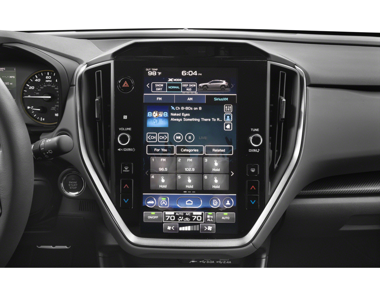 - Radio: Subaru 11.6" Multimedia Plus System -inc: AM/FM stereo, HD Radio, multi-touch gesture high resolution display screen, voice activated controls, Bluetooth audio streaming and hands-free phone connectivity, Bluetooth hands-free SMS text messaging connectivity, iPod control capability, SiriusXM w/360L (4 months free trial included/subscription required after), SiriusXM Travel Link (4 months free trial included/subscription required after), smartphone integration: Android Auto and Apple CarPlay w/full screen view and wireless connection, USB and Over The Air (OTA) audio system update, steering wheel audio system and Bluetooth control switches, 6 speakers (2 dash panel tweeter, 2 front door and 2 rear door), illuminated 3.5mm auxiliary input jack, illuminated front USB A and C input/charge ports and illuminated rear USB A and C charge ports